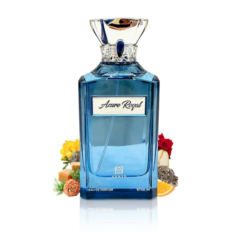 Ahmed Al Maghribi Azure Royal Eau de Parfum is a refined unisex scent blending pear, orange, rose, and freesia with a sensual base of ambroxan, cedarwood, and musk. Fresh, elegant, and modern, it radiates quiet luxury and lasting sophistication.