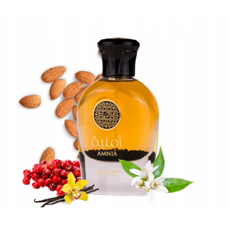 Al Wataniah Amnia is a unisex Oriental Floral fragrance with notes of almond, pink pepper, tuberose, orange blossom, vanilla, tonka bean, and patchouli. It offers a warm, spicy, and floral scent that is elegant, indulgent, and long-lasting.
