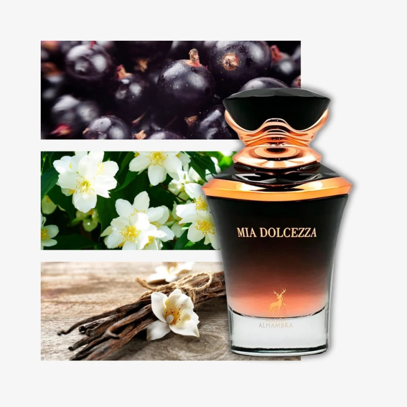 Maison Alhambra Mia Dolcezza is a unisex fragrance that opens with blackcurrant, pink pepper, and bergamot. Its floral heart of jasmine, ylang-ylang, tuberose, and orange blossom blends into a warm base of vanilla, musk, and amber.