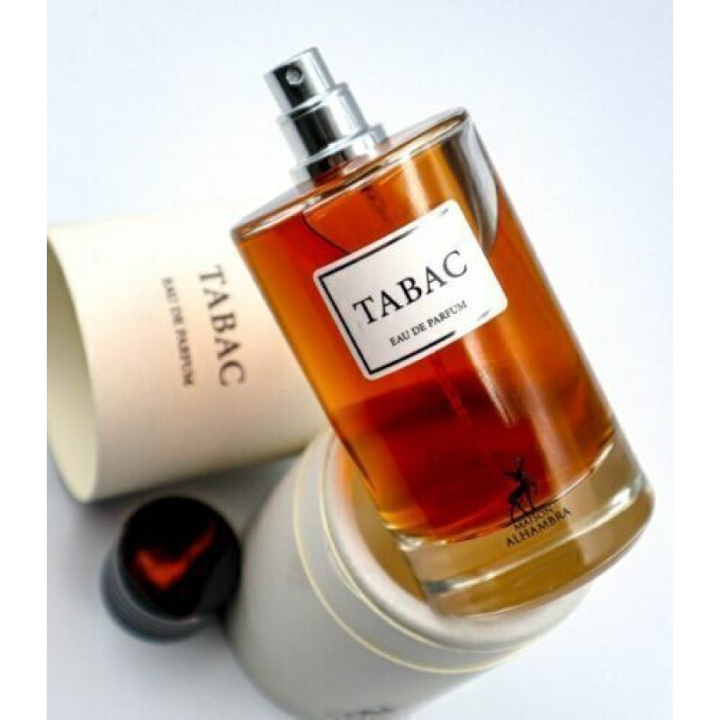 Maison Alhambra Tabac is a unisex fragrance that opens with fruity notes of plum, peach, bergamot, and citruses. Its heart of honey, smoky accords, and spices leads into a warm base of tobacco, amber, and white tobacco, creating a bold, elegant, and long-