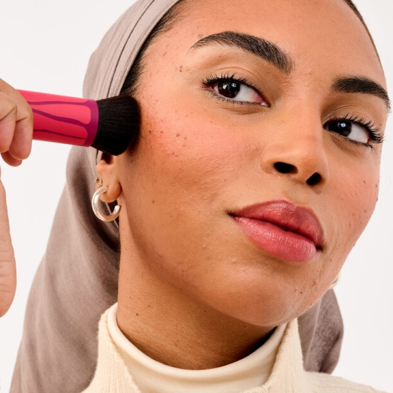 The brush features an angled, domed head that hugs the natural contours of the face, making it easy to apply bronzer along the cheekbones, temples, jawline, and forehead. Its dense yet ultra-soft synthetic bristles pick up the perfect amount of product and distribute it evenly, allowing you to build intensity gradually. Whether you are aiming for subtle warmth or more defined sculpting, the WaveMaker Brush helps create dimension with a seamless, airbrushed effect.