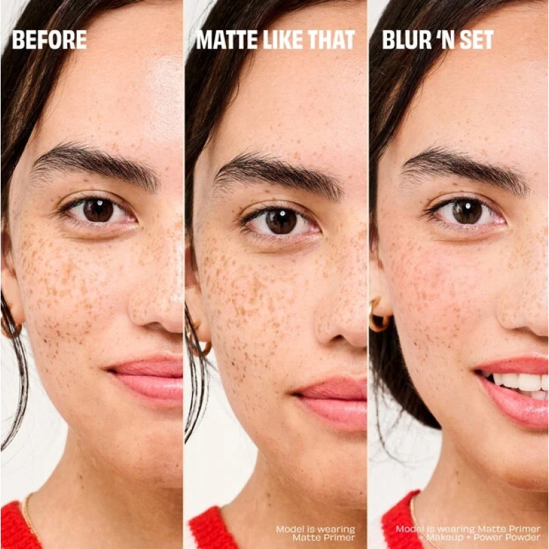 Benefit The POREfessional Matte Primer blurs pores and controls shine for a smooth, matte finish. Lightweight formula refines texture, extends makeup wear and keeps oily skin balanced and flawless throughout the day.