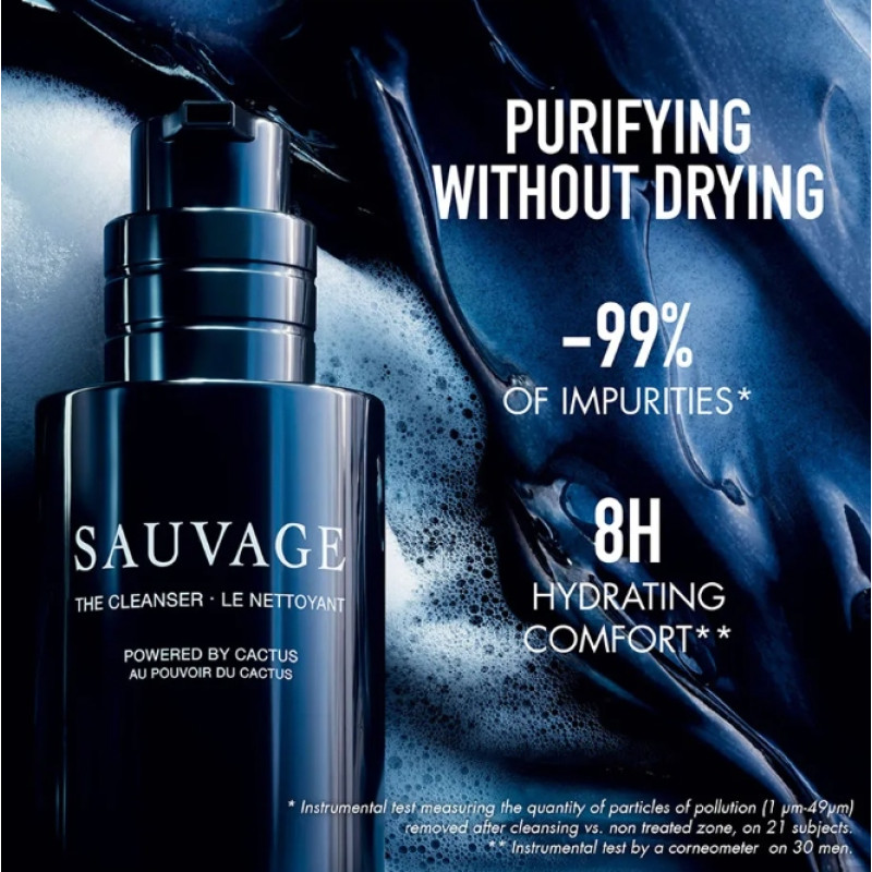 Dior Sauvage The Cleanser 125 ml is a men’s purifying facial cleanser with cactus extract and charcoal that removes impurities while respecting skin balance. Freshly scented and ideal for daily grooming.