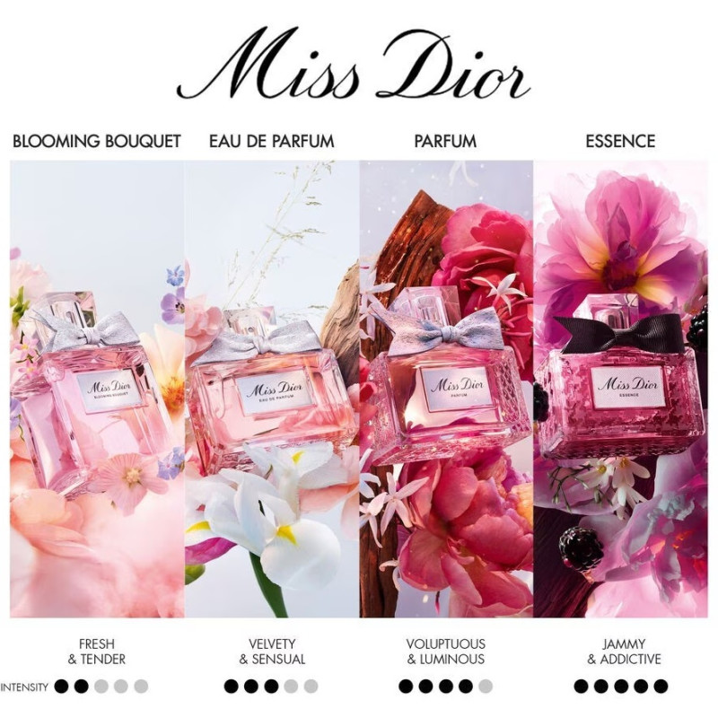 Dior Miss Dior Blooming Bouquet EDT 100 ml opens with fresh Calabrian bergamot, blooms into delicate rose and peony, and finishes with soft white musk. A light, romantic floral scent that feels clean, graceful and perfect for everyday springtime elegance.