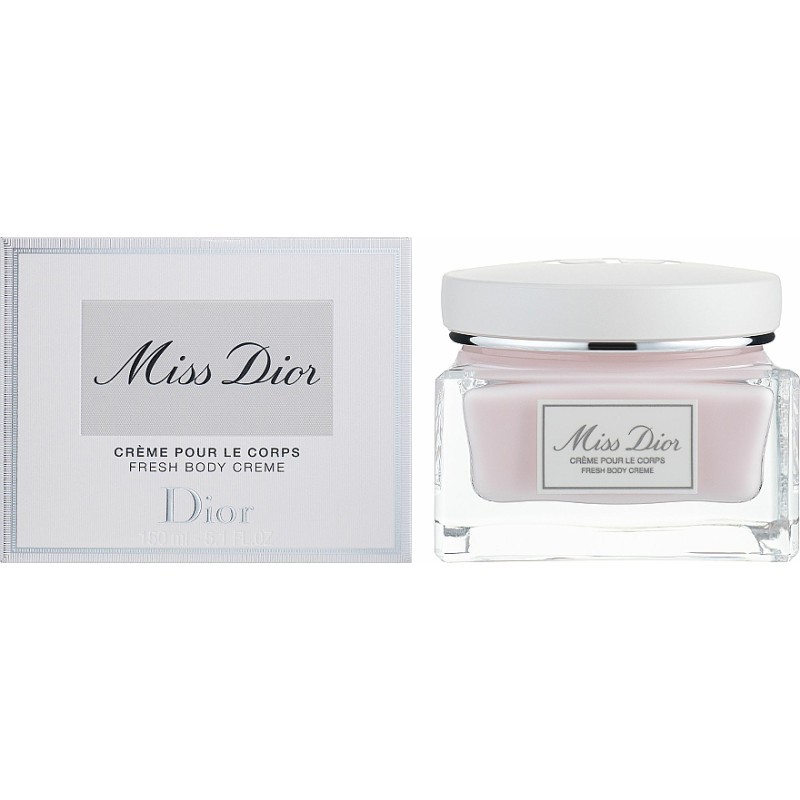 Miss Dior Body Crème 150 ml is a luxurious scented body cream with rose oil that hydrates and softens skin while leaving a delicate floral Miss Dior trail. Elegant, silky, and perfect for daily indulgence.