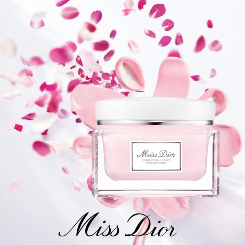 The cream features a fresh yet rich texture that melts seamlessly into the skin, providing hydration without leaving a greasy or heavy residue. Enriched with Rose Oil, the formula helps nourish and smooth the skin, leaving it supple and comfortable. Its fragrance unfolds gently, echoing the floral signature of Miss Dior, where Calabrian Bergamot brings a fresh and luminous touch, followed by a soft floral heart of Peony and Damask Rose.
