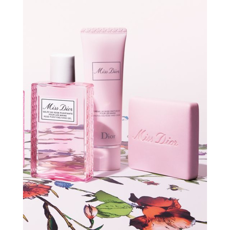 Dior Miss Dior Rose Purifying Hand Gel 100 ml is a scented cleansing hand gel with Centifolia rose water that cleans, hydrates, and leaves hands softly perfumed with bergamot, rose, peony, and white musk. Elegant and practical.