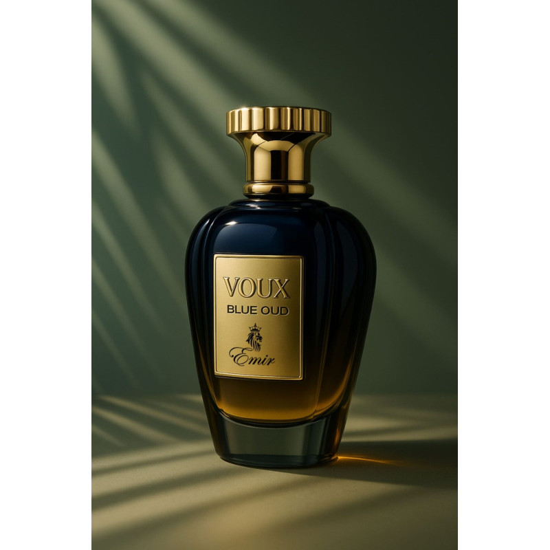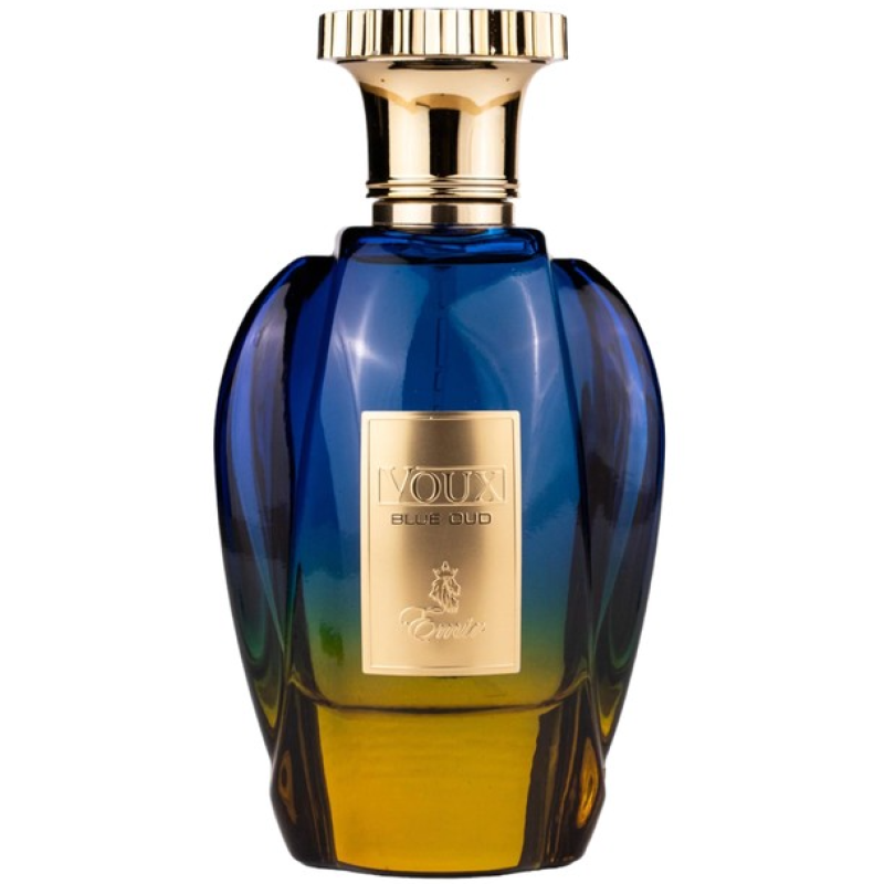 Emir Voux Blue Oud Eau de Parfum is a 100 ml unisex Amber Woody fragrance from the UAE with top notes of oud, fruity and floral accents, a heart of spices and ambergris, and a base of woody notes, olibanum, and labdanum for a rich, elegant, and long-lasti