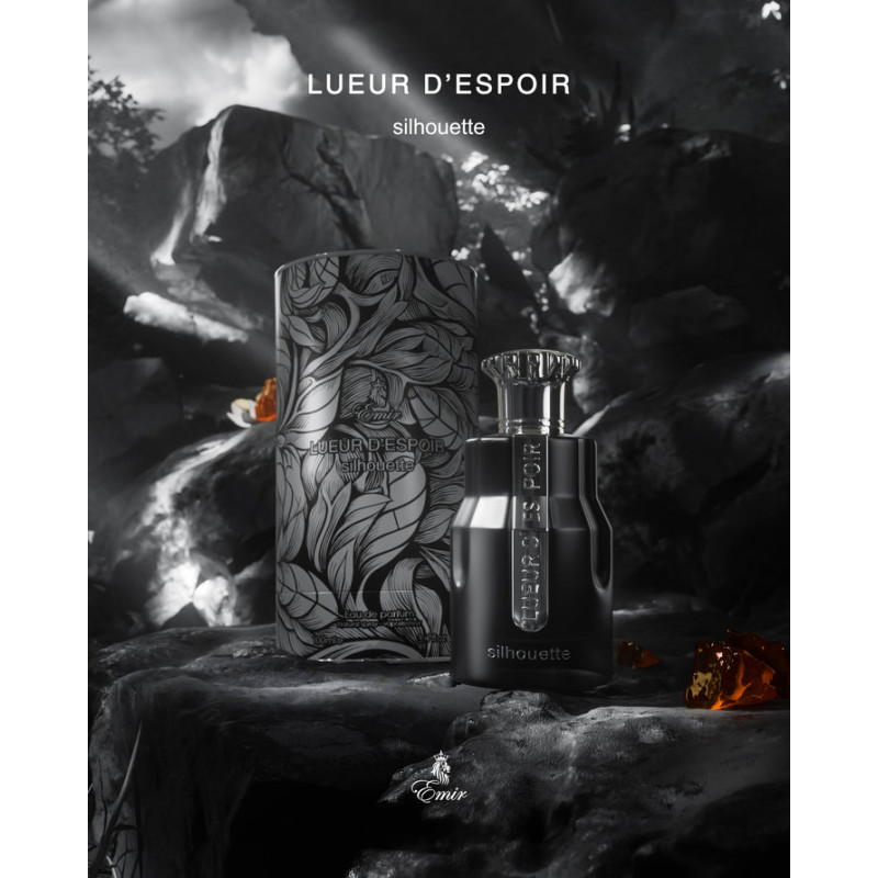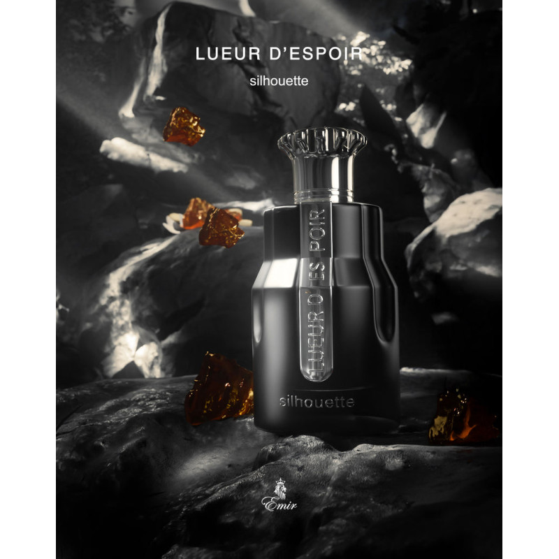 Emir Silhouette Lueur D’Espoir EDP 100 ml is a refined unisex oriental-woody fragrance with luminous orange blossom, warm amber, and a soft base of sandalwood, amberwood, and musk. Elegant, calming, and timeless.