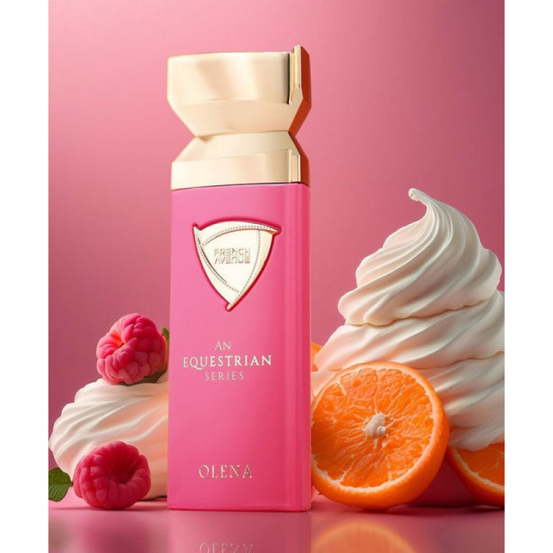 French Avenue An Equestrian Series Olena Eau de Parfum is a floral fruity gourmand fragrance for women, blending grapefruit, bergamot, blackcurrant, orange blossom, and marshmallow over a soft musky base. Sweet, elegant, and long-lasting.
