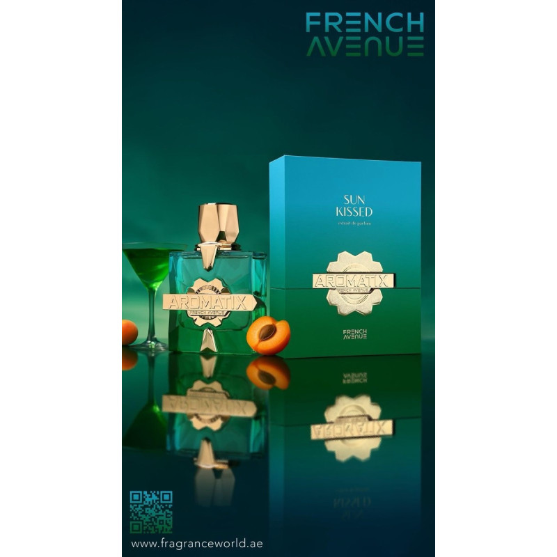 French Avenue Aromatix Sun Kissed is a vibrant unisex Extrait de Parfum 100 ml from the 2025 Aromatix French Avenue collection. Classified within the Woody-Aromatic fragrance family, it blends sparkling citrus, tea-infused freshness, and warm woody facets to create a radiant, uplifting scent experience suitable for both women and men.