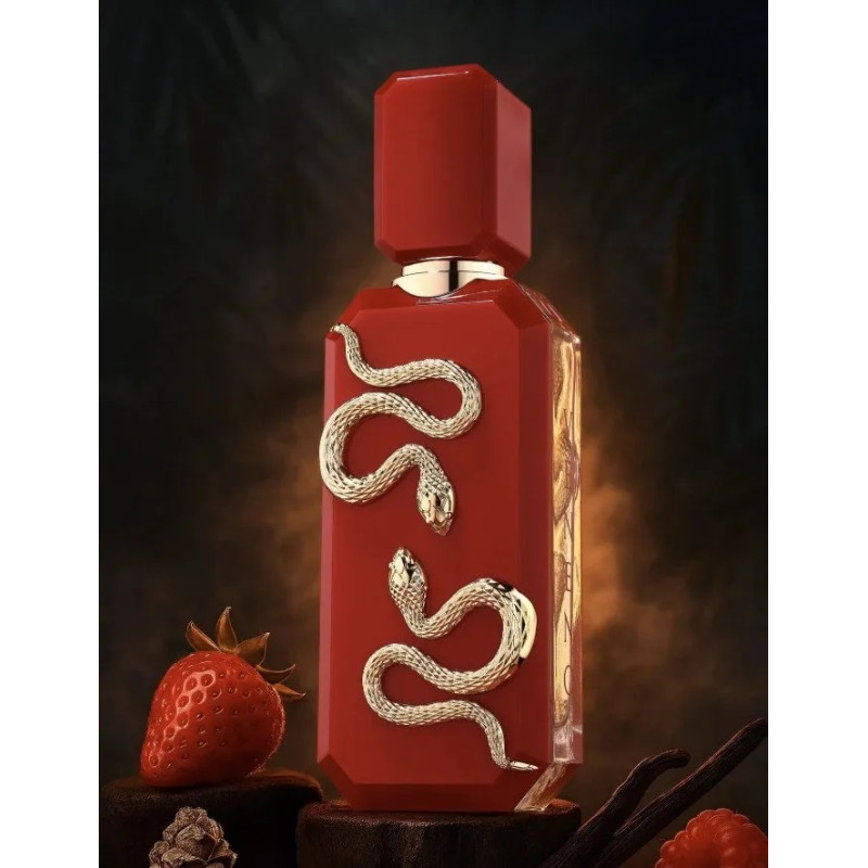 The fragrance opens with a delightful fusion of strawberry, blackberry, and caramel, creating an immediately captivating and indulgent impression. At its heart, a rich blend of raspberry, cedar, and cinnamon emerges, adding complexity and a warm, inviting character. The base unfolds with luxurious notes of leather, caramel, vanilla, patchouli, fir, and tonka bean, leaving a lingering, sensual finish that exudes elegance and depth.