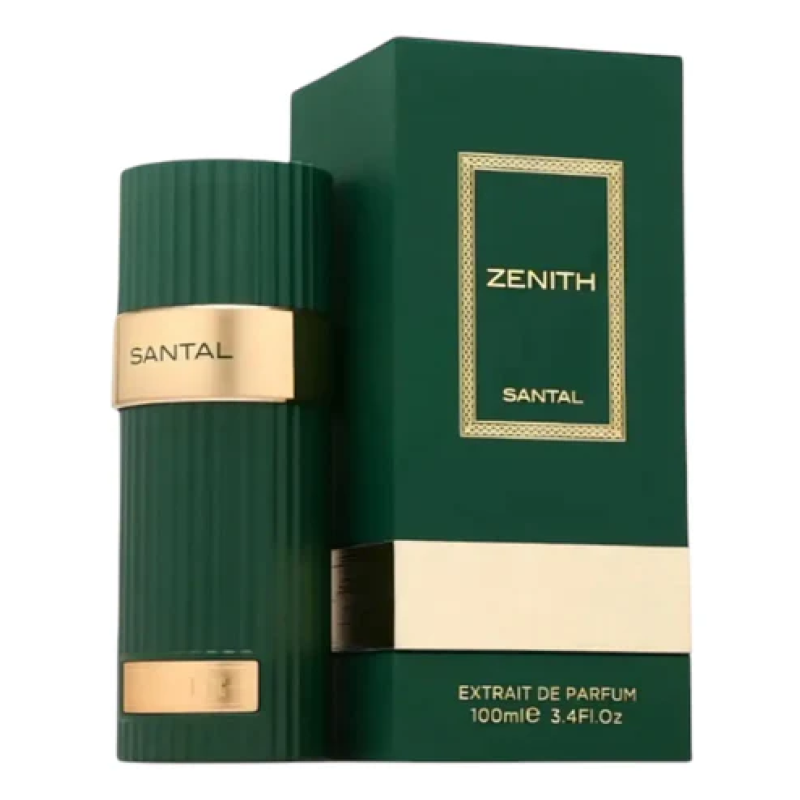 Zenith Santal Extrait de Parfum 100 ml is a rich unisex oriental-woody scent with spicy saffron, lavender, chestnut, and a creamy base of sandalwood, cedarwood, and vanilla. Deep, elegant, and long-lasting.