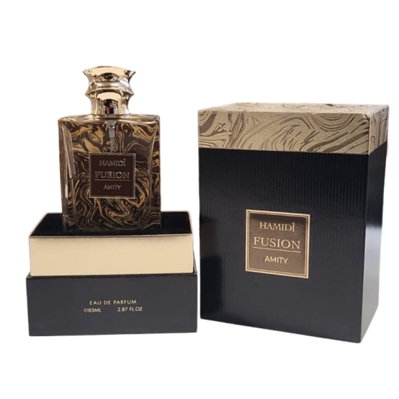 Presented in an 85 ml bottle with a marbled design and gold-tone cap, Fusion Amity is a versatile fragrance that appeals equally to men and women, making it a stylish addition to any collection.