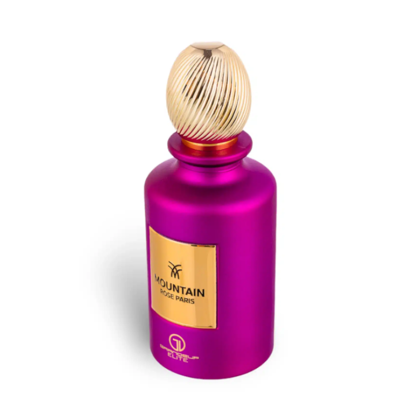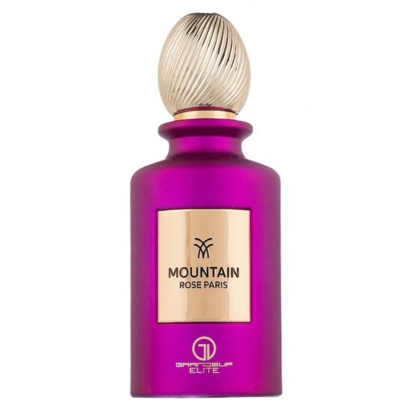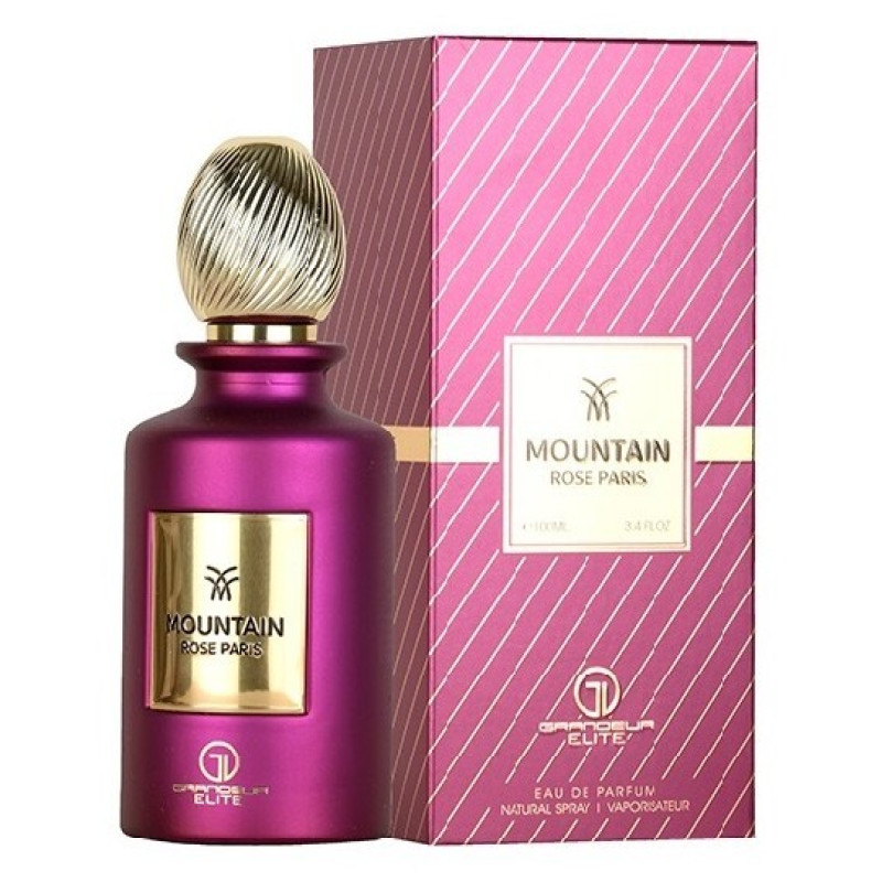Grandeur Mountain Rose Paris Eau de Parfum is a 100 ml unisex Floral Woody fragrance from the UAE with top notes of rose and musk, a heart of amber, and a base of jasmine, offering a fresh, elegant, and long-lasting scent suitable for any occasion.
