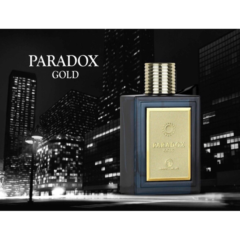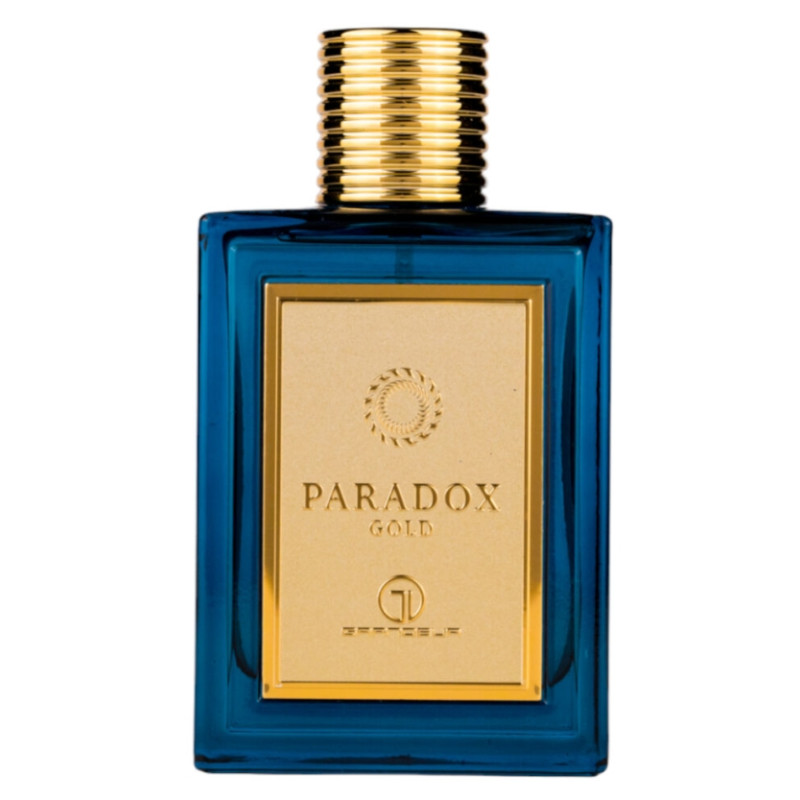Grandeur Paradox Gold Eau de Parfum is a 100 ml women's Aromatic Woody fragrance from the UAE with top notes of lemon, mint, and green apple, a heart of tonka bean, ambroxan, and geranium, and a base of vanilla, cedarwood, vetiver, and oakmoss for a fresh