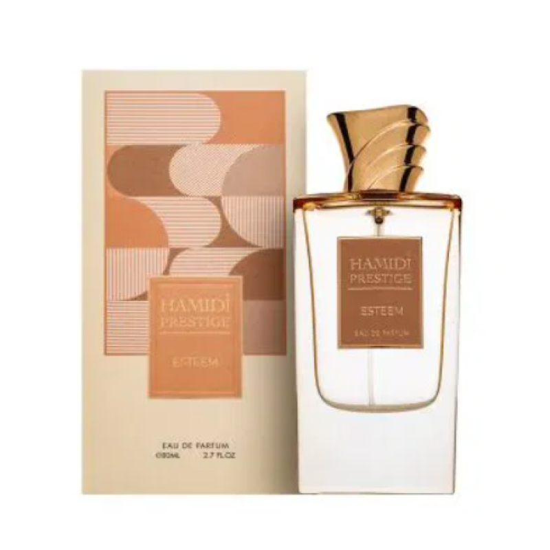 Hamidi Prestige Esteem is a unisex Floriental fragrance blending citrus, floral, and gourmand notes. With blood orange, honey, and vanilla, it radiates warmth and modern elegance, leaving a sensual, lasting impression of sophistication and confidence.