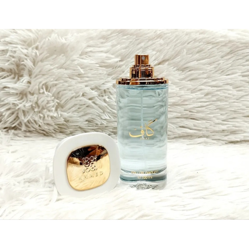 Kaaf by Ahmed Al Maghribi is a Floriental Aquatic unisex fragrance with watermelon, red fruits, lavender, Sicilian orange, lotus, jasmine, lily of the valley, sea notes, white musk, sandalwood, and ambroxan, offering a refreshing, elegant, and calming sce