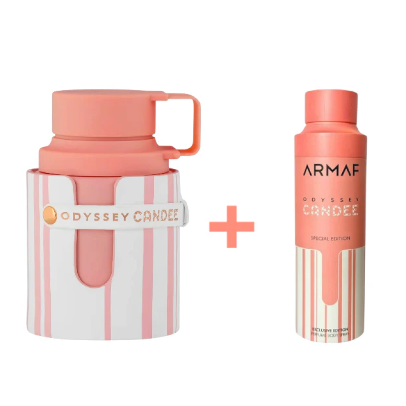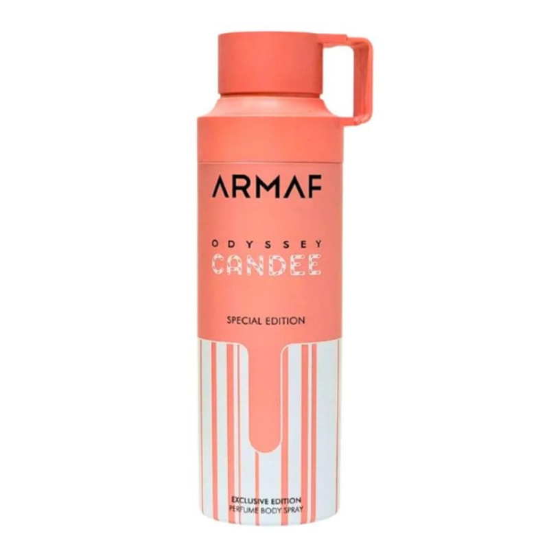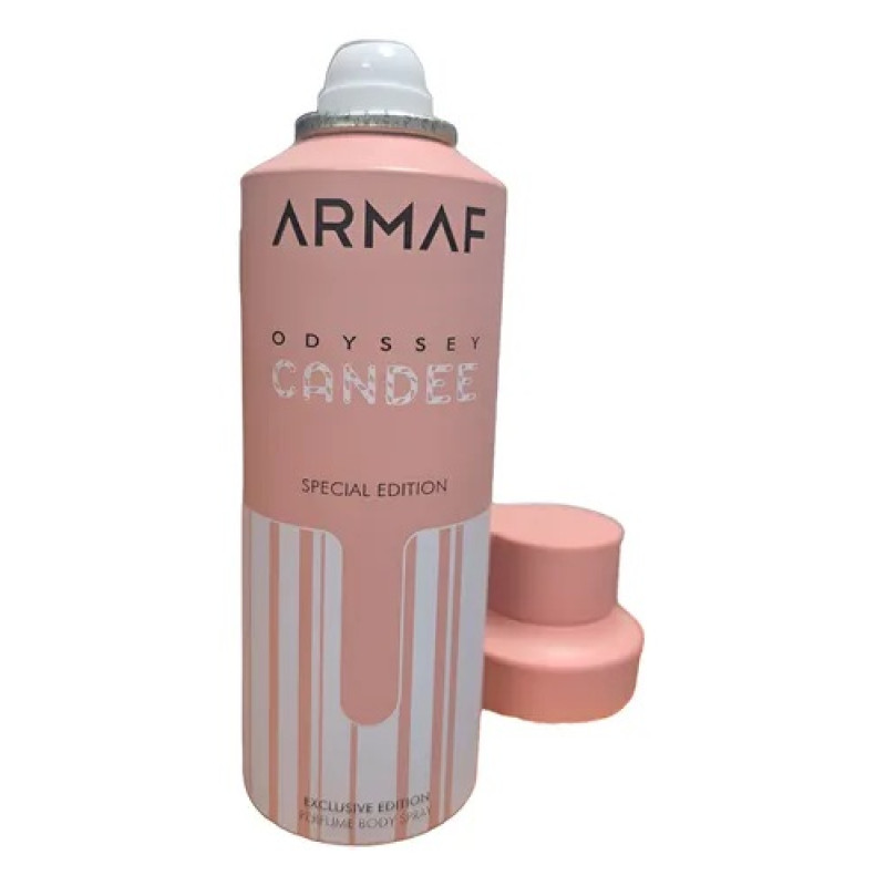 Armaf Odyssey Candee Body Spray 200 ml is a feminine fruity-gourmand scent with strawberry, raspberry, peach, caramel, jasmine, and amber, offering a playful, fresh, and long-lasting fragrance perfect for everyday wear.