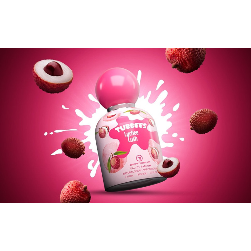 Grandeur Tubbees Lychee Lush Eau de Parfum 50 ml is a joyful, feel-good unisex fragrance that wraps you in a bright burst of fruity sweetness and modern elegance.