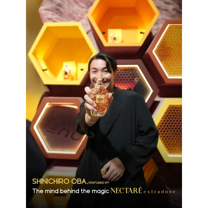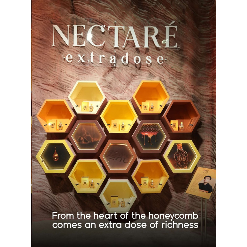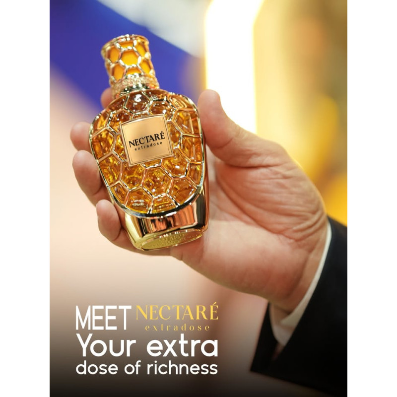 As the composition transitions into its heart, Nectare Extradose reveals a radiant floral-sweet accord. Notes of golden honey, creamy tuberose, glowing orange blossom and soft jasmine blend together, forming a luminous and gently indulgent middle phase.
