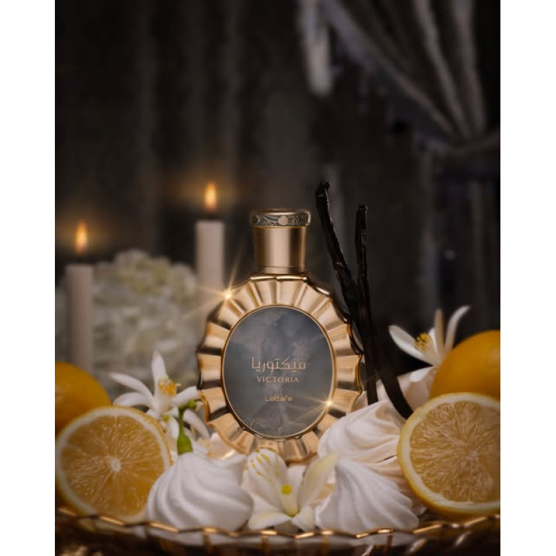 Lattafa Victoria EDP blends zesty lemon-meringue brightness with soft neroli and warm vanilla, creating a playful yet elegant floral-fruity gourmand scent. A lively unisex fragrance perfect for refreshing days and smooth, comforting evenings.