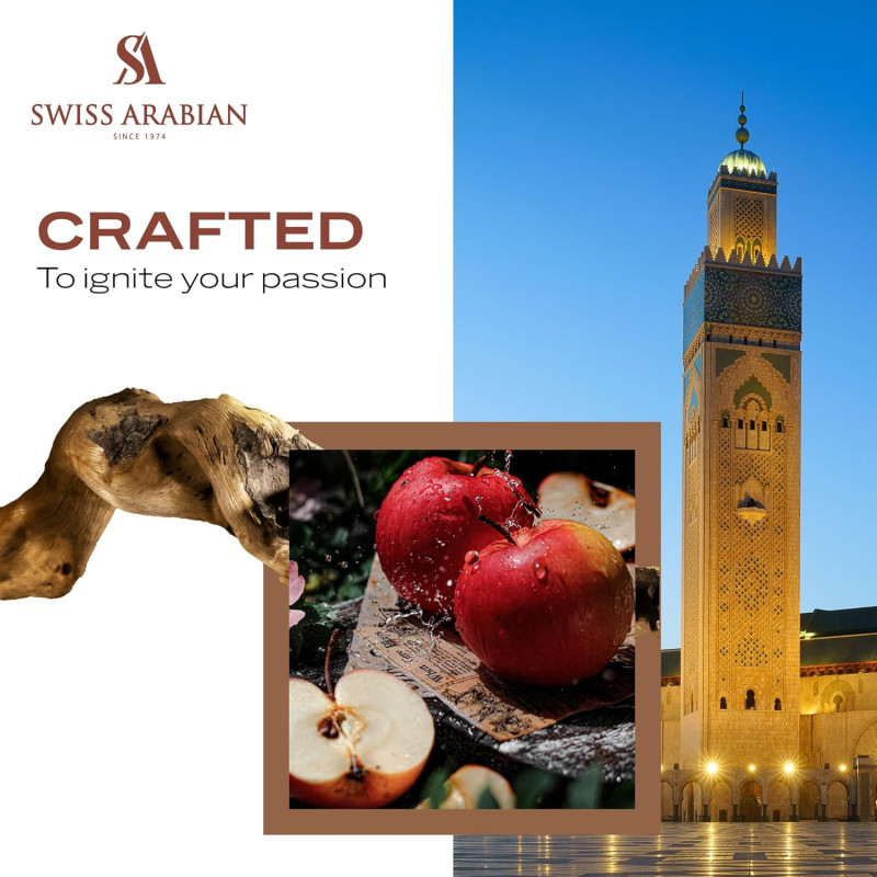 Swiss Arabian Essence of Casablanca Extrait de Parfum is a rich unisex fragrance with juicy apple and grape notes, a refined heart of orris and patchouli, and a warm amber-vanilla base offering deep, long-lasting elegance.