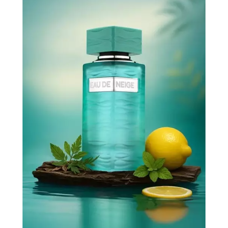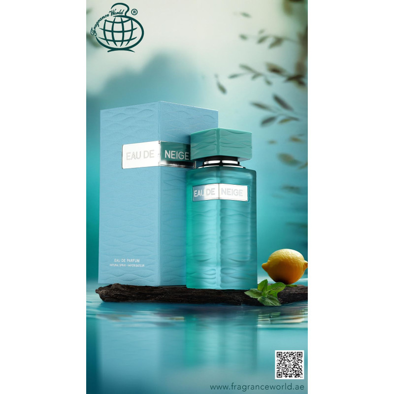 Fragrance World Eau De Neige EDP 90 ml is a fresh unisex scent with bright citrus, artemisia and cooling mint, layered with rosewood, marine amber, patchouli, musk and incense. Clean, modern and ideal for everyday or office wear.