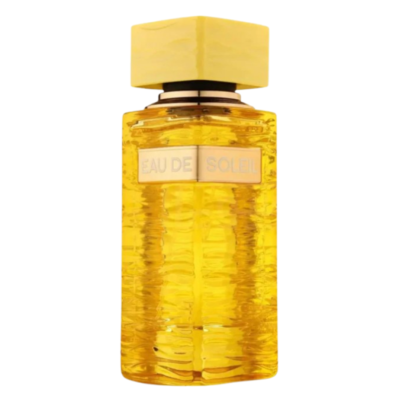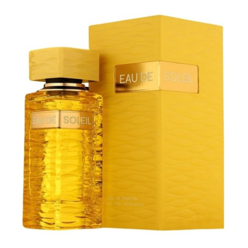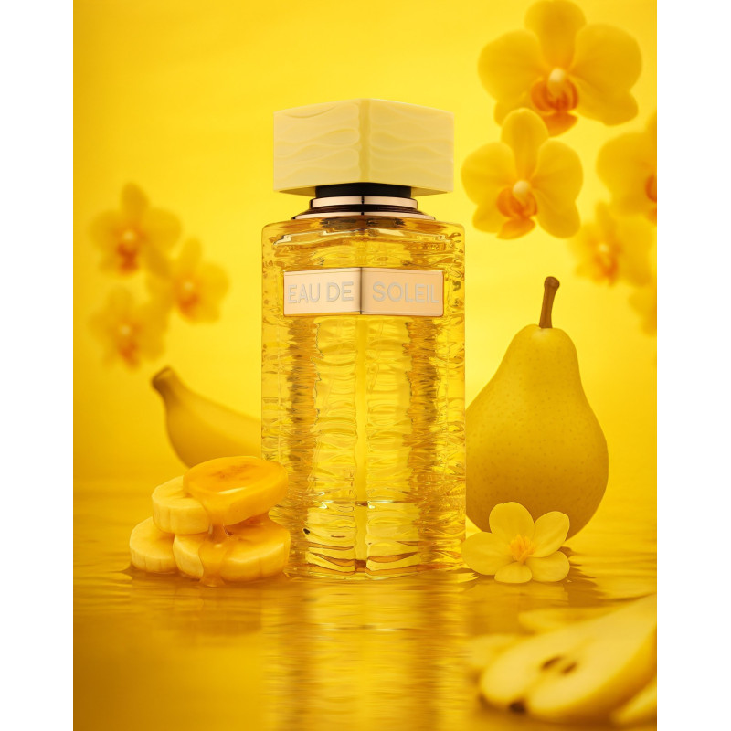 Fragrance World Eau de Soleil Eau de Parfum is a radiant unisex scent with juicy pear and banana, soft jasmine and orchid, and a creamy base of vanilla and sandalwood. Sunny, fruity-floral fragrance ideal for daytime and warm weather.