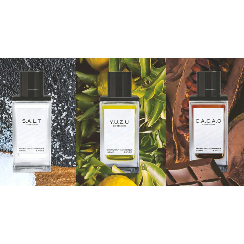Fragrance World SALT EDP is a fresh unisex aromatic marine scent with bergamot, cardamom and berries, a salty heart with fig and cedarwood, and a clean mineral base of amber, moss and musk inspired by the sea.