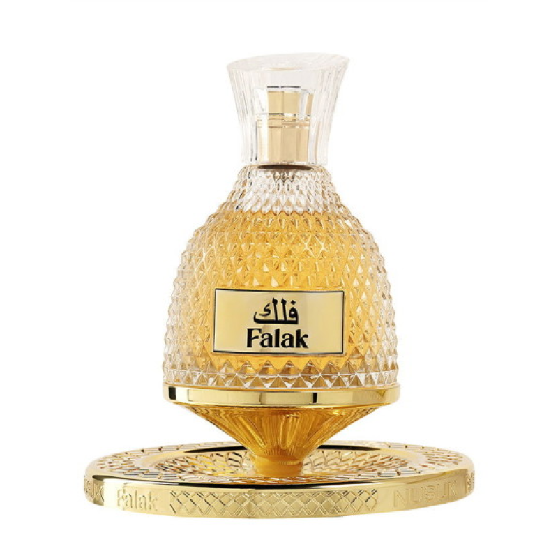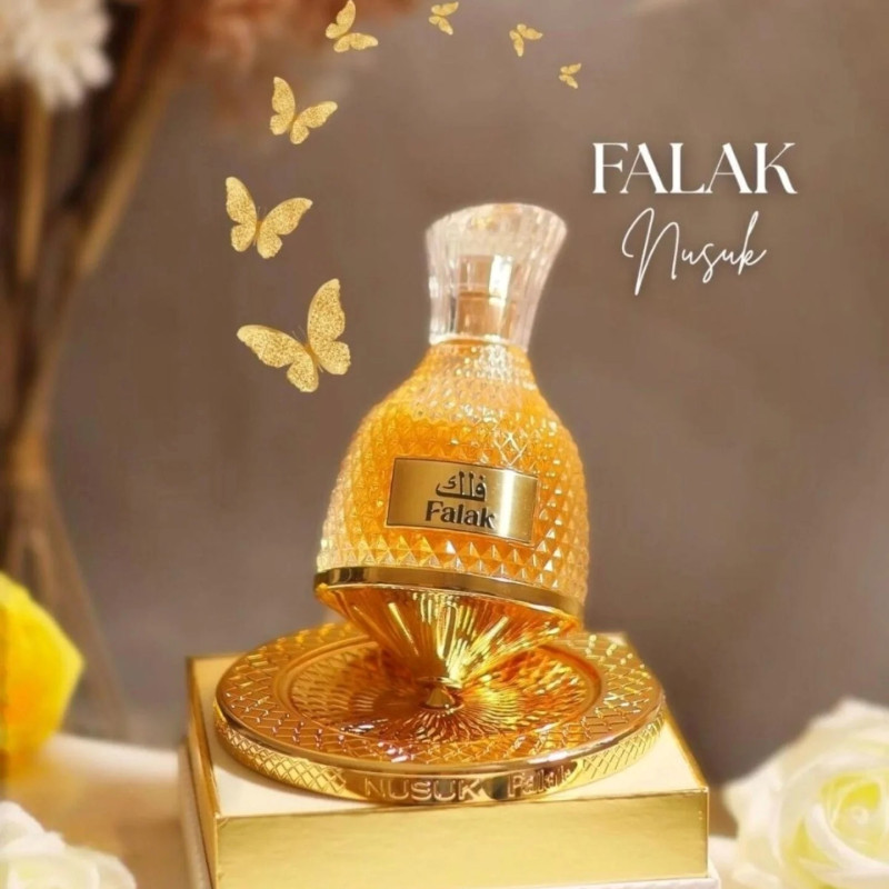 In the final stage, Nusuk Falak settles into a gentle yet persistent base of White Musk and Praline. These notes soften the sweetness and give the fragrance a clean and velvety finish that clings to the skin for hours. The result is a long-lasting and inviting scent trail that feels sensual and cozy.