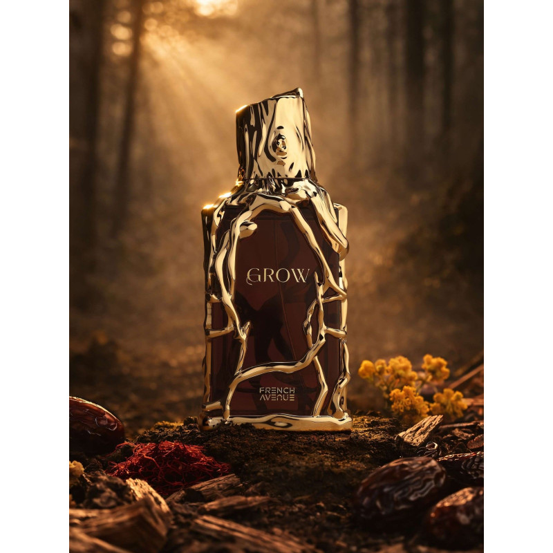 French Avenue Grow EDP 100 ml is a bold unisex oriental fragrance blending saffron, pear, and dates with creamy florals and a deep woody-vanilla base. Warm, gourmand, and modern with lasting depth.