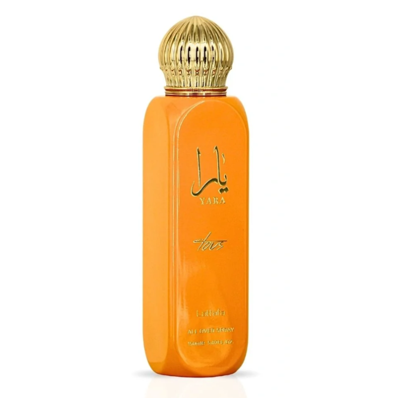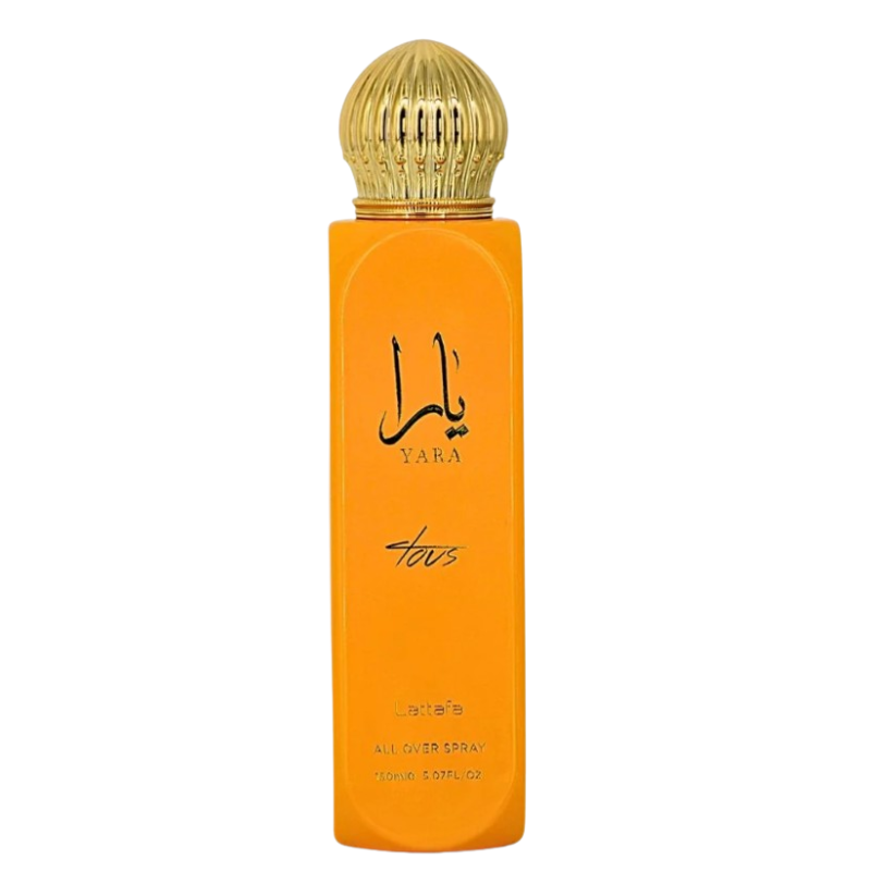 Lattafa Yara Tous All Over Spray 150 ml is a vibrant tropical body and hair mist created for women who love sweet, sunny and uplifting fragrances. This lightweight all-over spray delivers a refreshing yet softly lasting scent that can be applied to body, hair and clothing, making it perfect for daily wear, warm weather and effortless layering.