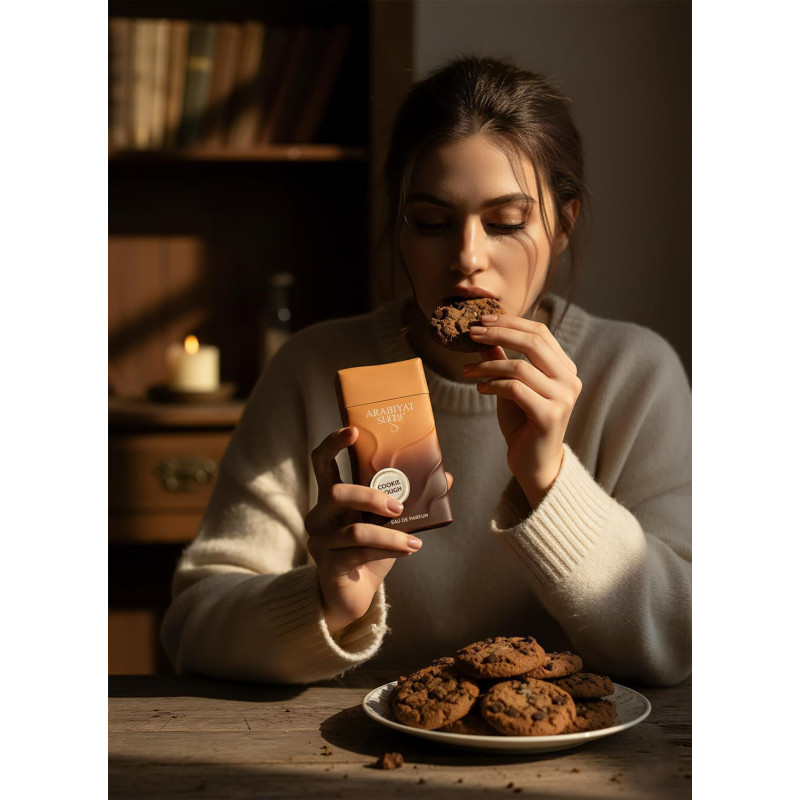 Arabiyat Sugar Cookie Dough EDP 100 ml is an oriental vanilla gourmand fragrance with butter, coconut milk and cocoa, evolving into orchid over a warm base of vanilla, sandalwood and musk. Sweet, creamy and inspired by fresh cookie dough.