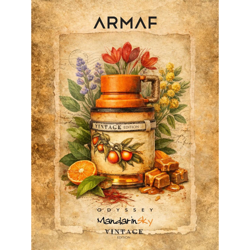 Armaf Odyssey Mandarin Sky Vintage Edition EDP is a refined unisex fragrance blending fresh mandarin citrus with soft spices and warm amber woods. Elegant and versatile, it offers a timeless yet modern scent perfect for day or evening wear.