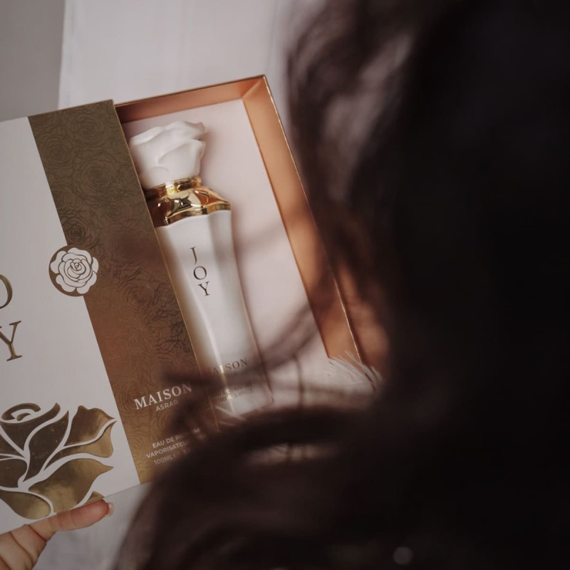 In the base, Joy settles into a smooth and creamy foundation of soft musk, velvety cashmere and subtle gourmand facets. The dry-down is warm, tender and gently addictive, lingering on the skin with a clean, comforting aura suitable for any season.