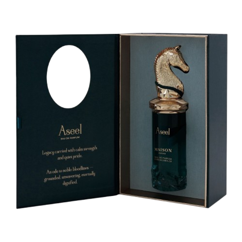 In the dry-down, Aseel settles into a warm, sensual base composed of silky musk, precious oud, creamy tonka, smooth cashmere, radiant ambergris, and earthy patchouli. This rich foundation ensures a lasting, enveloping trail that feels luxurious, contemporary and perfectly unisex.