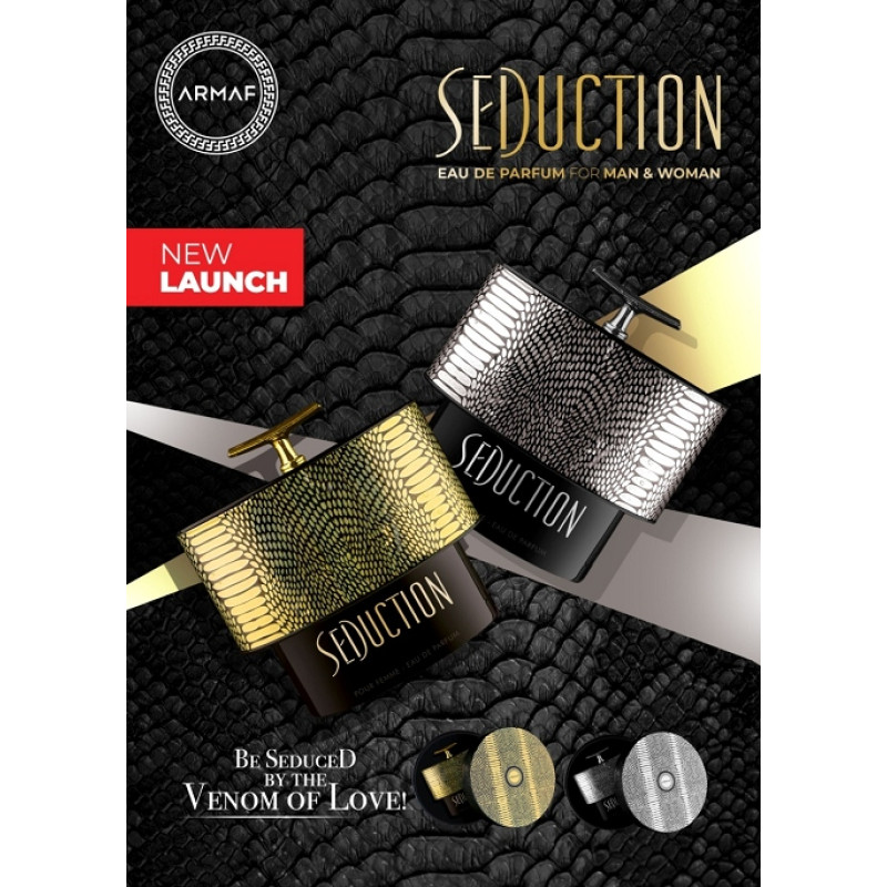 Armaf Seduction Pour Homme 100 ml is a masculine Woody Aromatic Eau de Parfum with grapefruit, sea notes, spices, and geranium, resting on amber and guaiac wood. It offers a fresh, elegant scent ideal for everyday or evening wear.