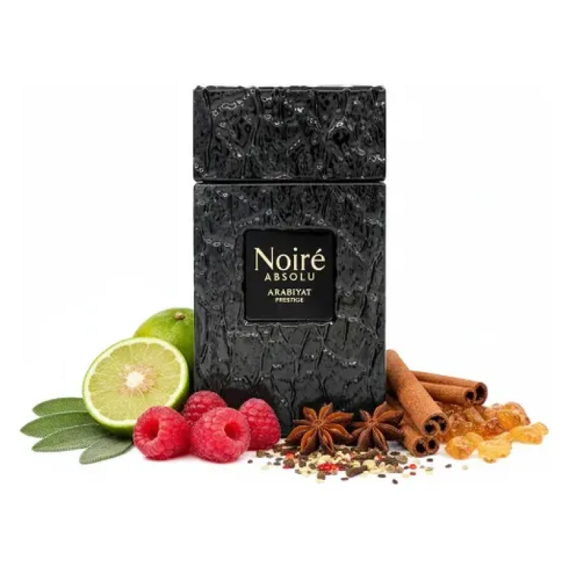 Arabiyat Prestige Noiré Absolu EDP 100 ml is a leather woody amber fragrance for men with clary sage, raspberry and bergamot, developing into cedarwood and ambra over a deep base of leather and vetiver. Bold, elegant and long-lasting.