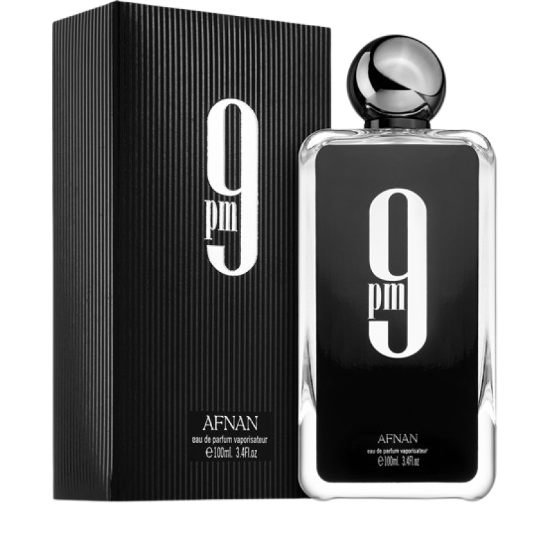 Afnan's 9PM EDP opens with fresh apple, spicy cinnamon, wild lavender, and zesty bergamot, evolving into a heart of orange blossom and lily-of-the-valley. The fragrance settles into a warm base of vanilla, tonka bean, amber, and patchouli, creating a last