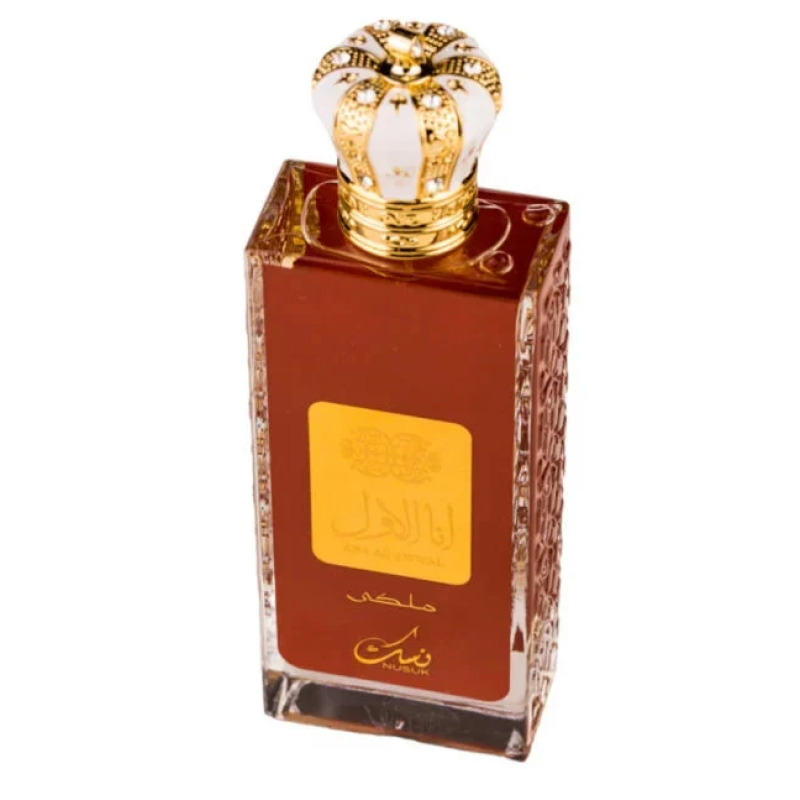 Nusuk Ana Al Awwal Malaki EDP is a bright women’s scent blending sparkling citrus, soft lavender-saffron notes and a warm praline-musk base. Elegant, feminine and long-lasting, perfect for daily wear and graceful, romantic moments.