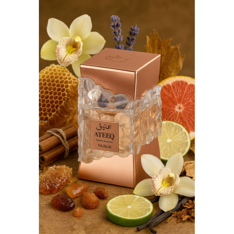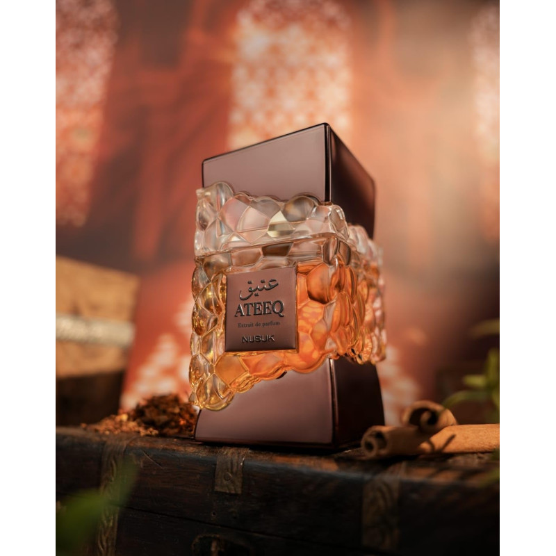 Nusuk Ateeq Extrait de Parfum 100 ml is an opulent unisex fragrance crafted for lovers of warm, oriental-woody compositions with a modern, elegant twist.