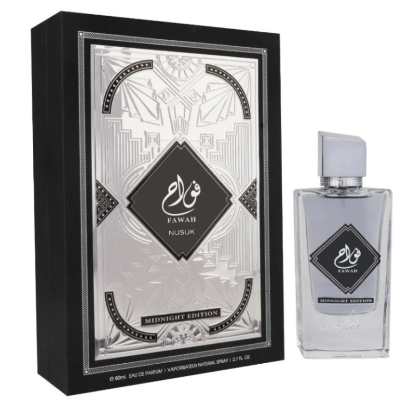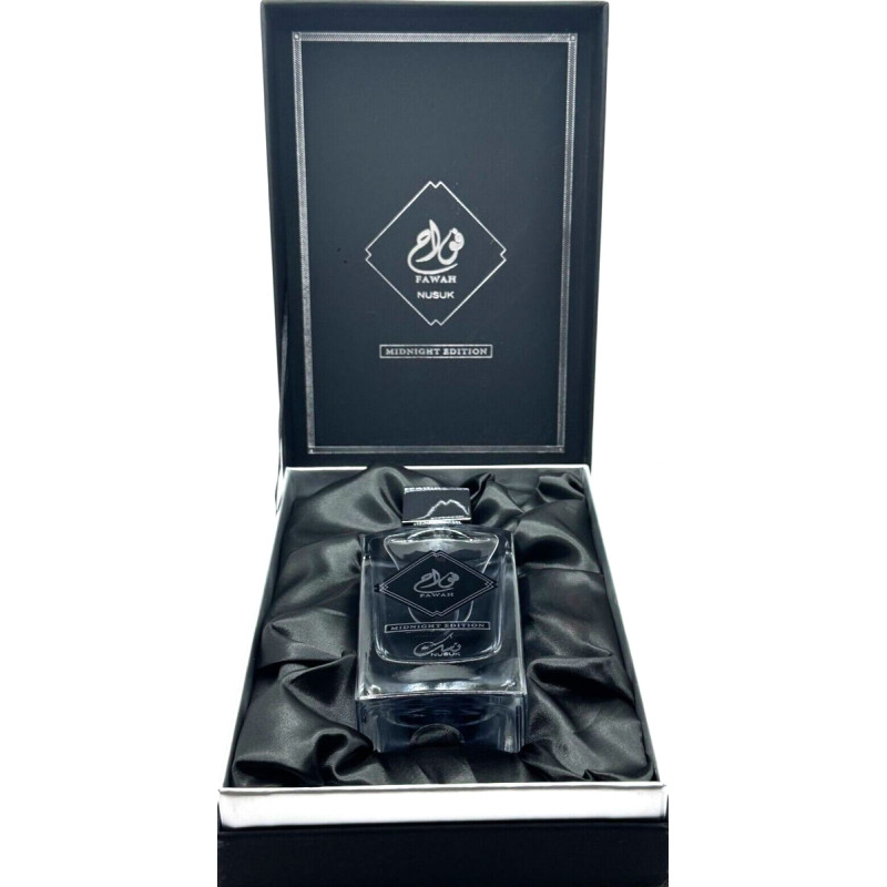 Nusuk Fawah Midnight Edition EDP 80 ml is a sensual, aromatic unisex fragrance crafted for those who embrace mystery and sophistication after dark.