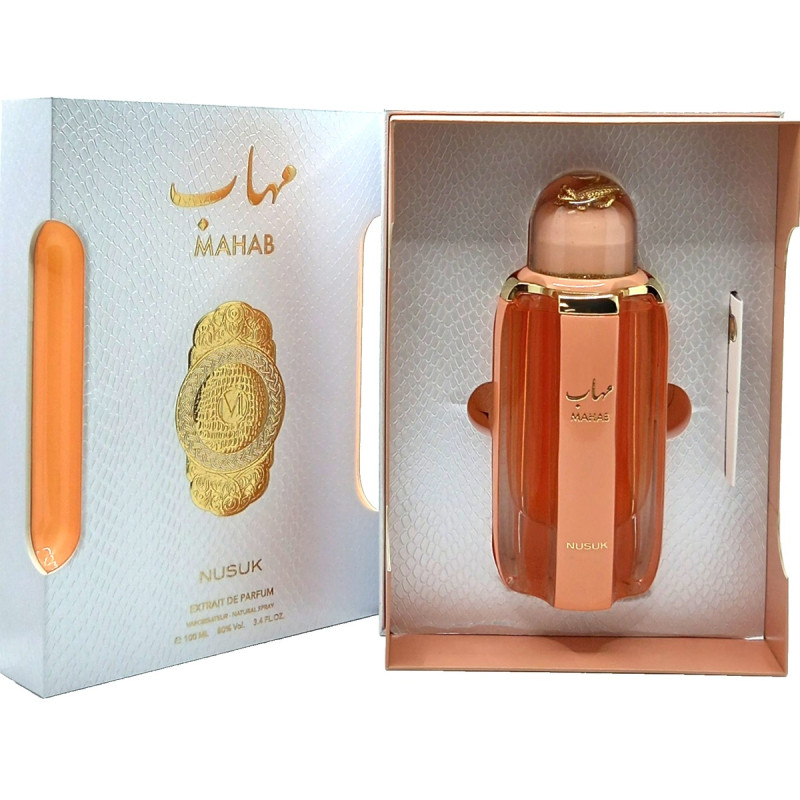 Nusuk Mahab Extrait de Parfum 100 ml is a sophisticated unisex fragrance that masterfully blends fruity, floral and woody-oriental elements into a harmonious, long-lasting scent.