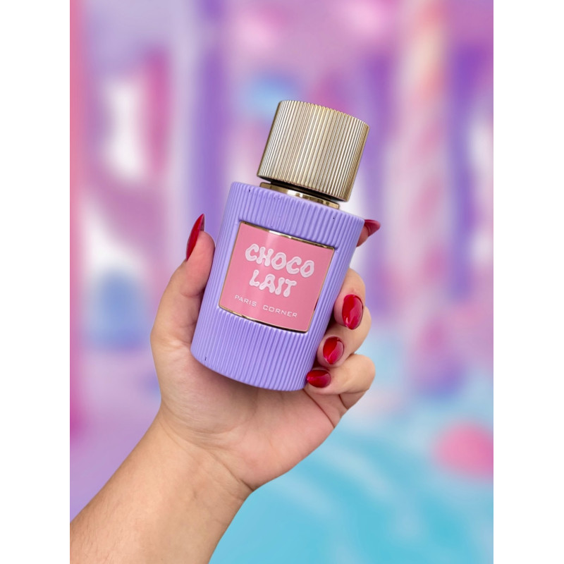 Paris Corner Choco Lait Eau de Parfum 100 ml is an oriental gourmand women’s scent with cocoa, apple and pink pepper over oud, incense and tonka. Creamy, smoky and addictive, offering warm depth and long-lasting elegance.