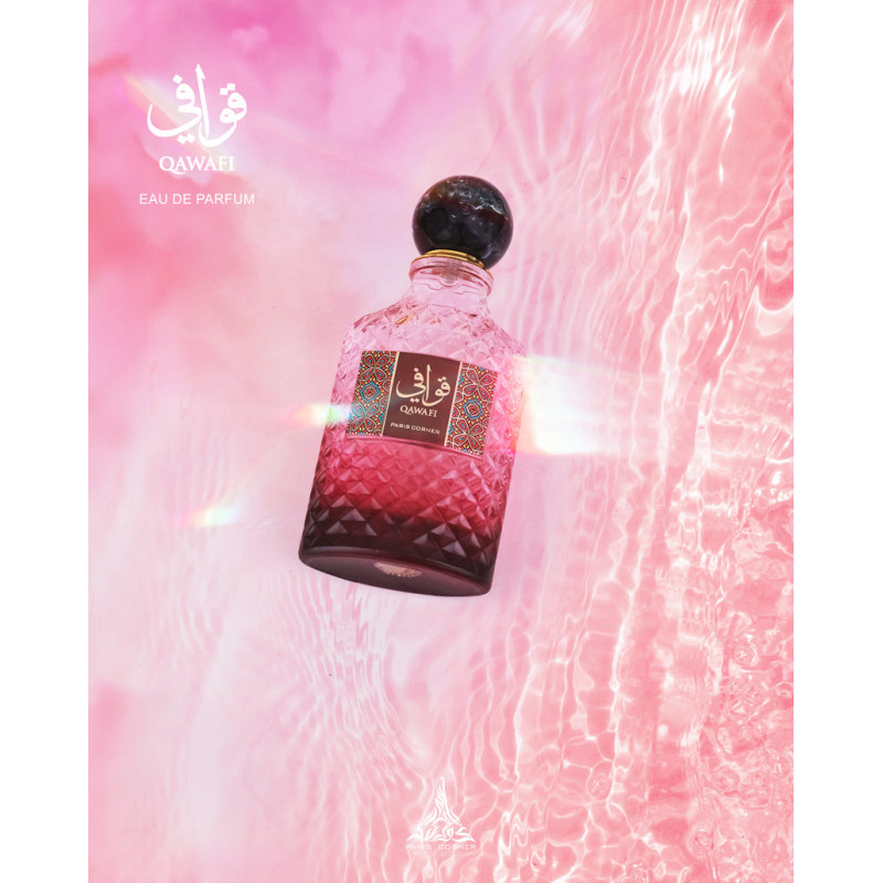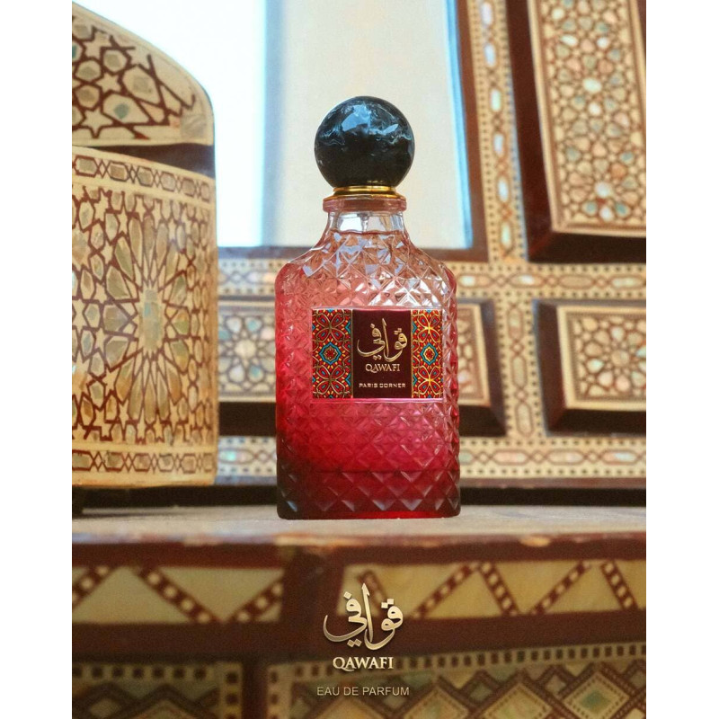 Paris Corner Qawafi is a unisex oriental-woody scent with saffron, juniper, pineapple, cardamom, cedarwood, vanilla, oud and amber. Bold, warm and resinous, it leaves a rich, long-lasting trail full of modern luxury.