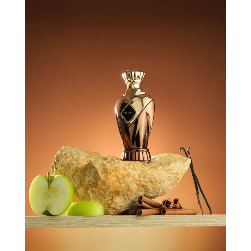 Designed for men and women alike, Prodigy transitions effortlessly from daytime freshness to evening allure. Its oriental-spicy-woody profile makes it a perfect choice for wearers who seek a striking, memorable scent with modern charisma.