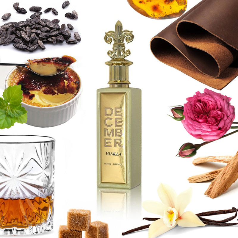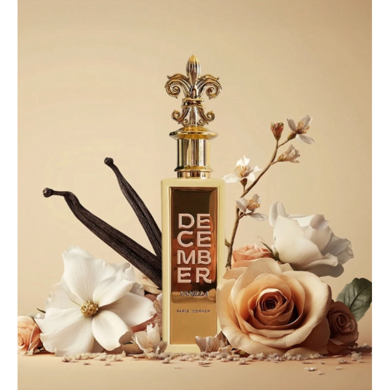 Paris Corner December Vanilla EDP 85 ml is a cozy unisex oriental gourmand fragrance with rum and vanilla orchid, a rich heart of vanilla, crème brûlée and spice, and a deep base of brown sugar, oud, amber and musk for warm winter elegance.