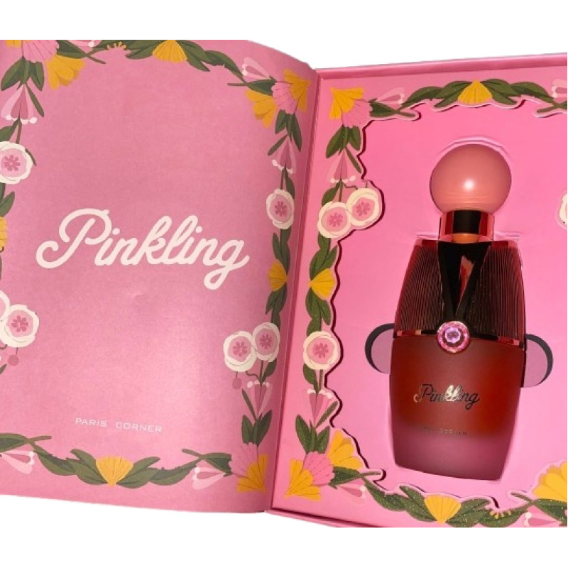 Paris Corner Pinkling EDP 100 ml is a playful unisex gourmand-amber fragrance with cherry, saffron, and milk, deepened by smoky benzoin, white florals, and a warm base of amber, cypriol, and musk. Sweet, seductive, and modern.