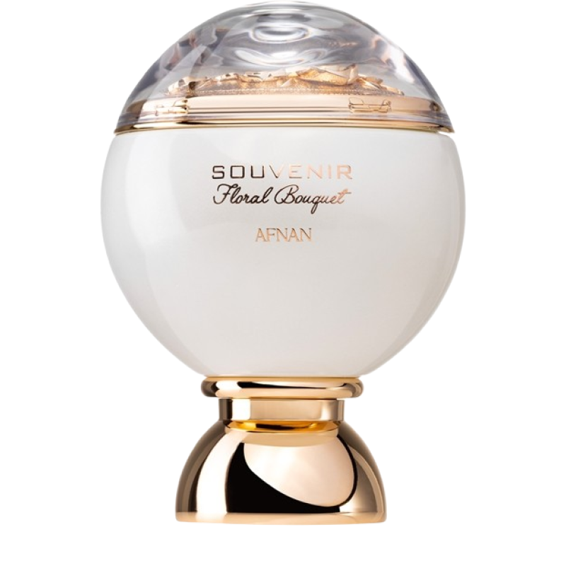 Afnan Souvenir Floral Bouquet Pour Femme is a delicate floral fragrance that opens with rhubarb, litchi, and bergamot. The heart reveals rose, peony, vanilla, and muguet, while the base notes of musk, cashmere wood, and amber offer a warm, lasting finish.